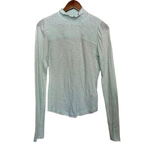 Free People Women's NWOT Iced Aqua Caroline Smocked Turtleneck Blouse Medium