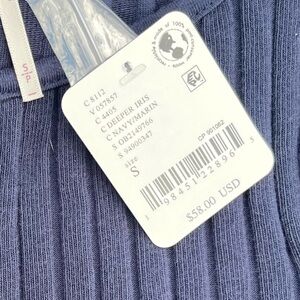 🆕 Free People Women's Navy Ribbed Tilly Long Sleeve Cardi Blouse Top Size S