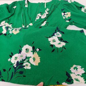 Free People Womens Neon Garden Floral Mini Dress Size 10 Green V Neck Bohemian