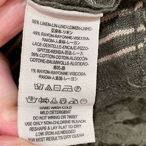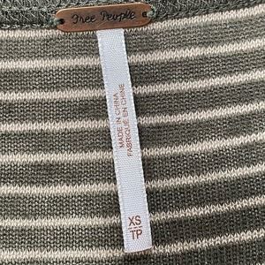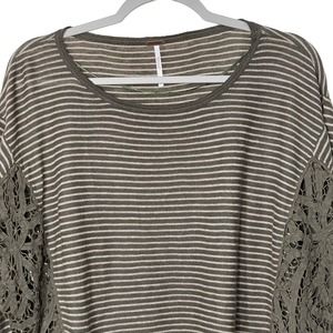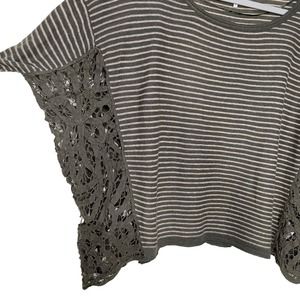 Free People Womens Olive Green Stripe Long Sleeve Lace Crop Oversize Top Size XS