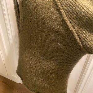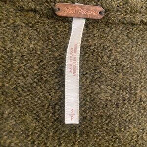 Beautiful Free people olive green oversized sweater. It has been gently used and has no stains or rips. Mild pilling, more that the sweater has some fuzz. It is marked a size small and the pit to pit, front only, is 25”. Deep v neck and wool blend. 🌷