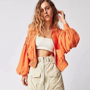 NWOT Free People Women's On Pointe Bomber Jacket Zip Closure Orange