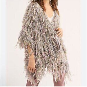 Free People Womens One Size Fairytale Fringe Kimono Metallic Gold Threads