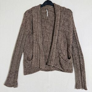 Free People Womens Open Knit Cardigan 100% Cotton Brown Size Large (Runs Small)
