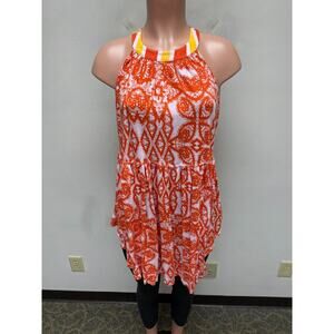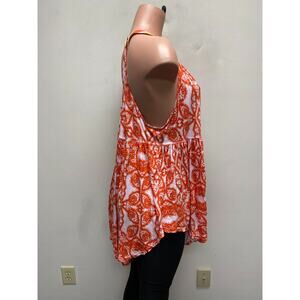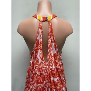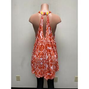 Free People Womens Orange Mimi Printed Sleeveless High Low Halter Swing Tunic M
