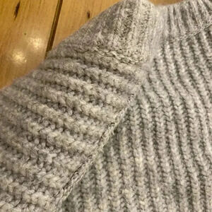 This is such a pretty free people gray knit sweater. It is very oversized. It has a scoop neck, is pull over and long sleeve. There is some pilling and I have put pictures of all angles of the item in the listing. Let me know if you have any questions and thank you for considering my item.