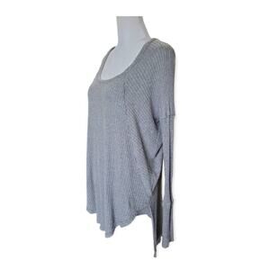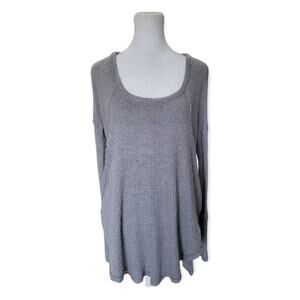 Free People Women's Oversized Waffle Knit Long Sleeve Thermal Top Small Grey