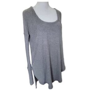 Free People Women's Oversized Waffle Knit Long Sleeve Thermal Top Small Grey