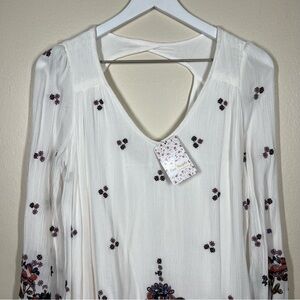 Free People Womens Oxford Boho Embroidered White Floral Flowy Dress NWT Small