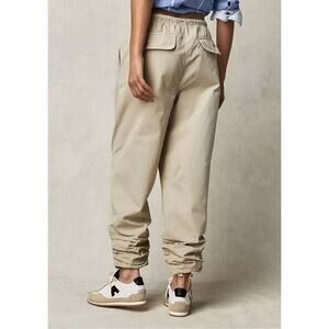 Free People Women's Parachute Oversized Baggy Pants Summer Khaki Cotton Tie Front Pockets Ruched Ankle Drawstring Tie Elastic Waist NWT