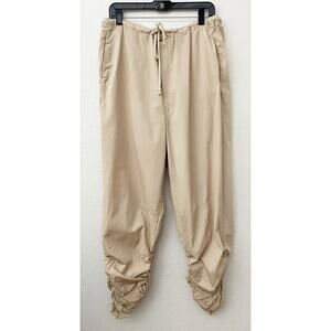 Free People Womens Parachute Pants Summer Khaki Cotton Pockets Ruched Ankle NWT