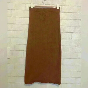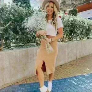 Free People Womens Pencil Skirt Size X Small Carmel Heather Split Front Ribbed in Excellent pre owned condition