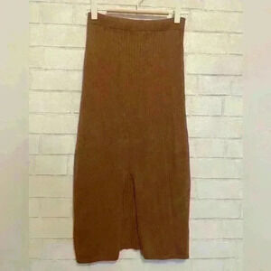 Free People Womens Pencil Skirt Size X Small Carmel Heather Split Front Ribbed