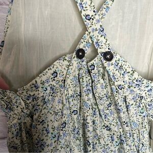 A sweet mini that's ready for sunny days. This Free People dress features a textured front and apron back for a fresh version of a must-have floral frock