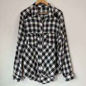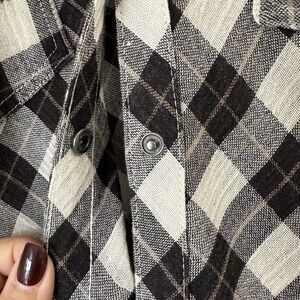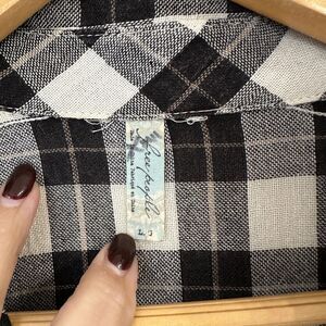 Free People Women's Plaid Lace Up Shoulder Shirt Snap Front Relaxed Fall Large