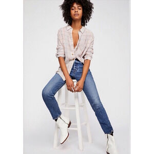 Free People Women’s Plaid Shirt Button Up Break My Stripe Long Sleeve Size Large