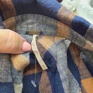 Free People Women's Preppy Plaid Flannel Ruffle Button Up Tunic Top Size M Multi