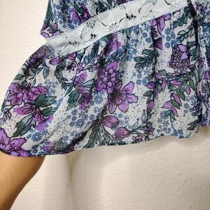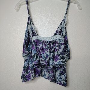 Free People Women's Purple and Blue Floral Croptop Babydoll Camisole Sz L NWOT