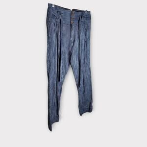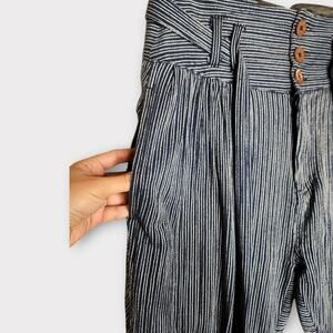 Free People Womens Rumors Blue Striped Cropped Harem Pant Button Waist 4 Boho
