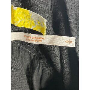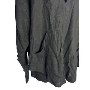Free People Women's S Plunge Neck Linen Blend Draped Blouse Top Black Lagenlook