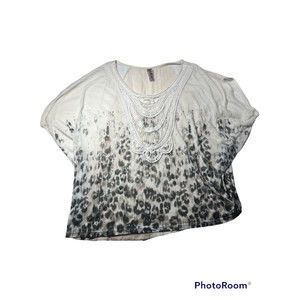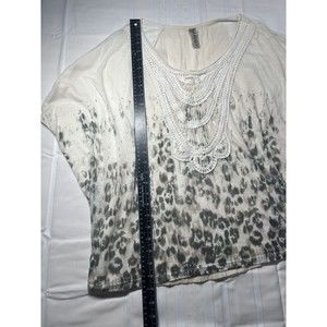 Free People Womens Rayon Blend SS Scoop Neck Over-sized Blouse Shirt Size M. Size medium, tag is about to fall off and discolored. The back of the shirt is off white, not sure if its supposed to be like that. !!Item is pilling!!