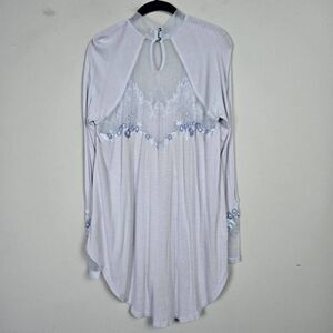 Free People Womens Saheli Embroidered Top Size Small Blue Mesh Peasant Coquette Floral
