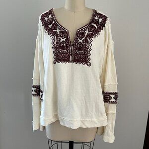 Free People Womens Santa Maria Pullover Boho Top Cream Embroidered Long Sleeve