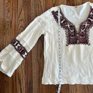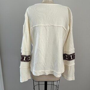 Free People Womens Santa Maria Boho Top Cream Embroidered Long Sleeve Small