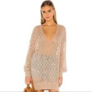 Free People Womens Say Hello Taupe Alpaca Wool Blend Pullover Sweater Tunic XS