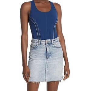 Free People Womens Scoop Neck Sleeveless Delta Bodysuit Navy Blue Small NWT