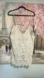 New with tags and in good condition. The embroidery on the front has a cut out feature and the back laces up but is not adjustable as the first loop is sewn to the strings (shown in last photo).