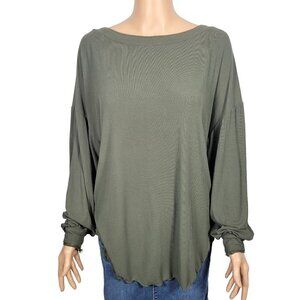 Free People Women's Shimmy Shake Dark Green Ribbed Oversized Top V Back Size XS
