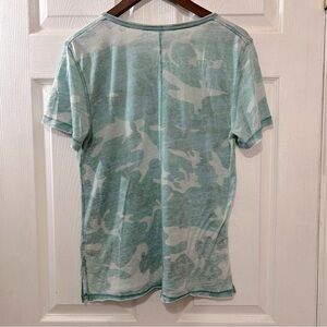 Free People Women's Short Sleeve T-Shirt Blue Green Camo Print Size XS