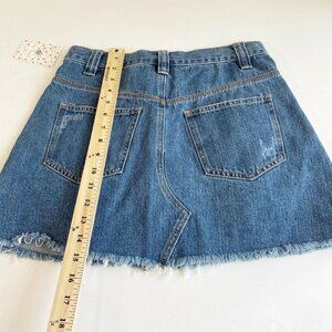 Free People Womens Side Car Denim Mini Skirt Size 26 Blue Raw Hem Dark Wash New