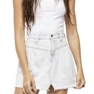 Free People Womens Sidecar Mini Skirt Sz 28 Blue Light Wash Denim Distressed