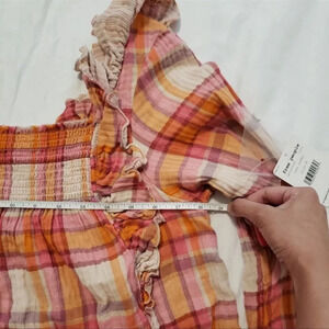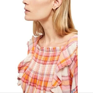 Free People Women's Siena Plaid Pullover Boho Bohemian Top with Ruffles size Med