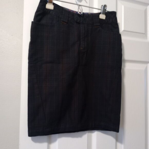Free People Womens Size 0 Plaid Midi Pencil Skirt Blue/Tan