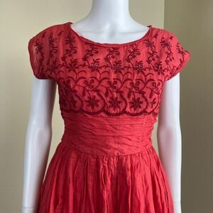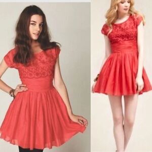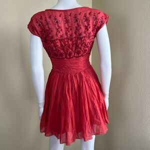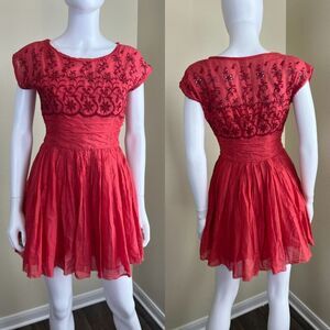 Free People Women's Size 2 Rose Garden Eyelet Embroidered Red Poppy Mini Dress