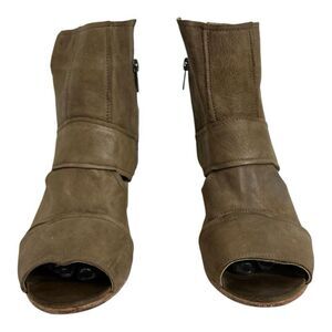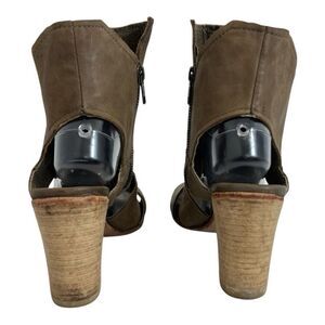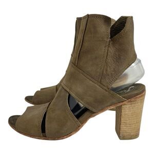 Free People Womens Size 40 Effie Leather Wooden Block Heeled Sandals in Taupe