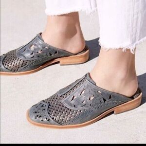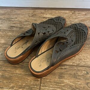 Free People Womens Size 41 Charcoal Leather Paramount Slip-On Laser Cut Mule. Great condition