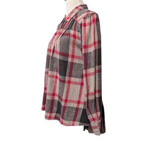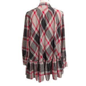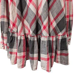 Free People Womens Size M Red Gray Peppy In Plaid Ruffle Hem Oversized Tunic Top