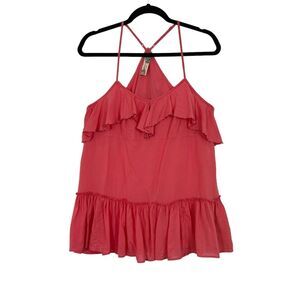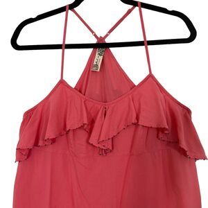 Free People Womens Size Medium Coral Ruffle Flowy Boho Beaded Tank Top 100% Rayon Bust: 36"