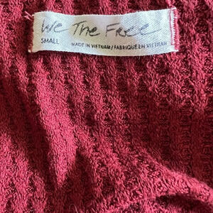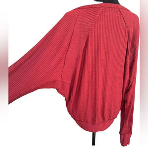 Free People’s signature oversized vibe, this waffle knit long sleeve top features a deep V-neckline, batwing sleeves, and slouchy fit that’s perfect for styling up or down. The soft red hue adds an easy pop of color. Size small.