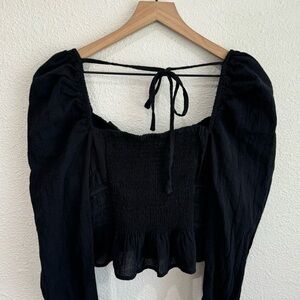 Free People Women's Small Black Chloe Puff Sleeve Blouse