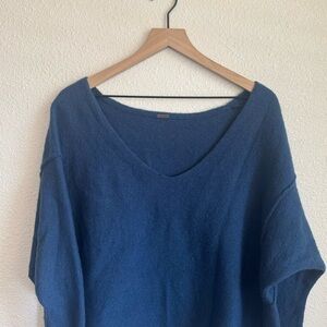 Free People Womens Small Blue Yak Wool Blend Vneck Oversized Sweater Boho Soft