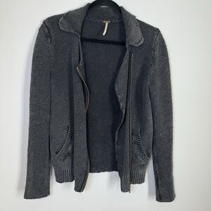 Free People Womens Small Gray Textured Knit Moto Sweater Jacket Cotton Zip Up