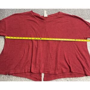 Free People Womens Small Thermal Tee Red Boxy Oversized Open Back Made in USA