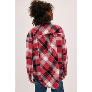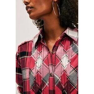 Free People Womens Small We the Free Layla Oversized Button-Down Plaid Shirt NEW