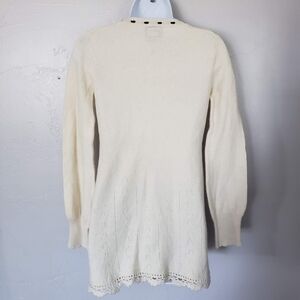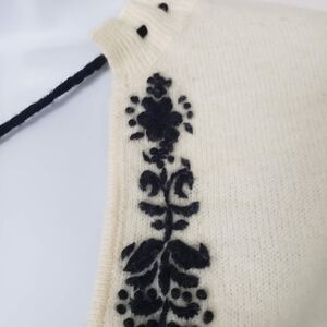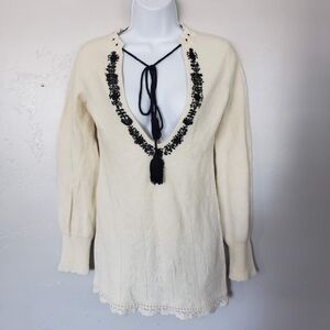 Free People Women's Small Wool Blend Ivory Sweater Black Embroidery Plunge Neck