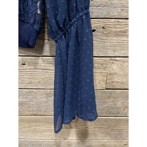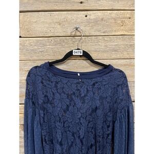 Free People Women's Something Like Love Lace Long Sleeve Top Navy Women Size XS